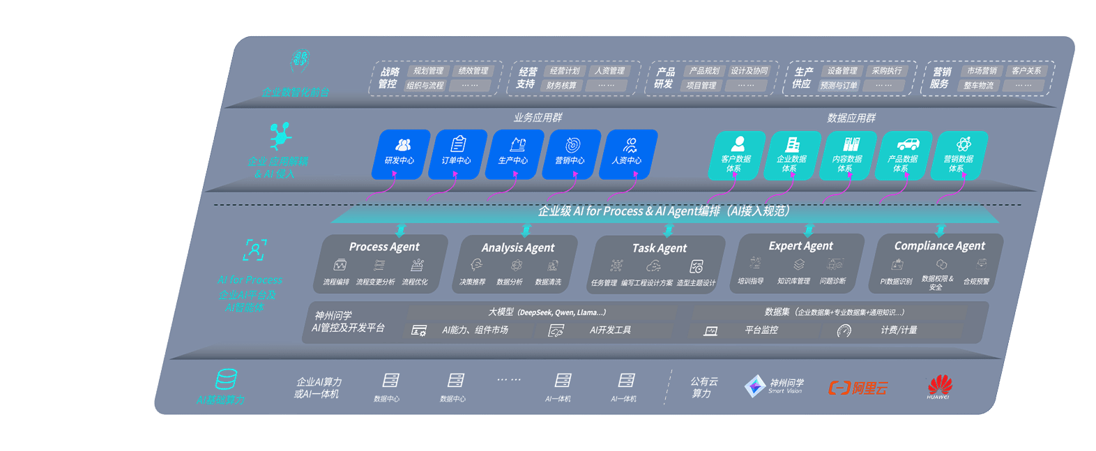 z6com尊龙问学智车解决方案是一套基于AI技术的汽车行业智能化系统,,覆盖从底层算力到顶层AI应用的全栈方案。。。方案由算力层、、模型层和应用层组成:算力层,,方案支持多种一体机配置,,具备云端灵活部署、、、多云适配以及动态优化计算资源的能力;模型层,,z6com尊龙问学平台版提供了企业级AI应用一站式构建与管理平台,,,,支持基于后训练强化技术的汽车企业专属模型的训练、、评测和运营;应用层,,,,z6com尊龙问学DeepSeek版提供包括超级员工、、、智能招采、、、智能营销、、智能客服、、AI for BI等一系列解决方案,,可助力汽车行业实现数字化转型,,,让管理更智能、、响应更敏捷。。